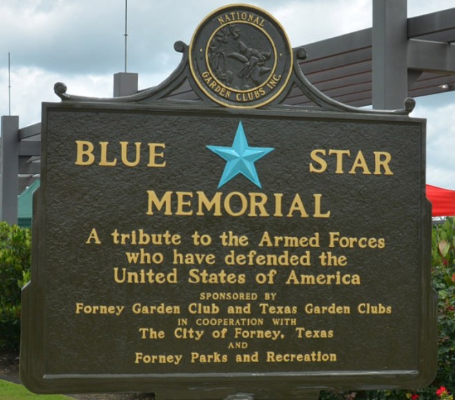 The Forney Garden Club sponsored a Blue Star Marker at the Mike Spellman Amphitheater .