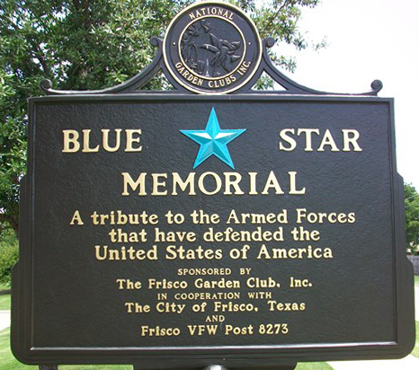 Frisco Garden Club sponsored a Blue Star Marker located at the Frisco Commons City Park dedicated on 5/30/10.
