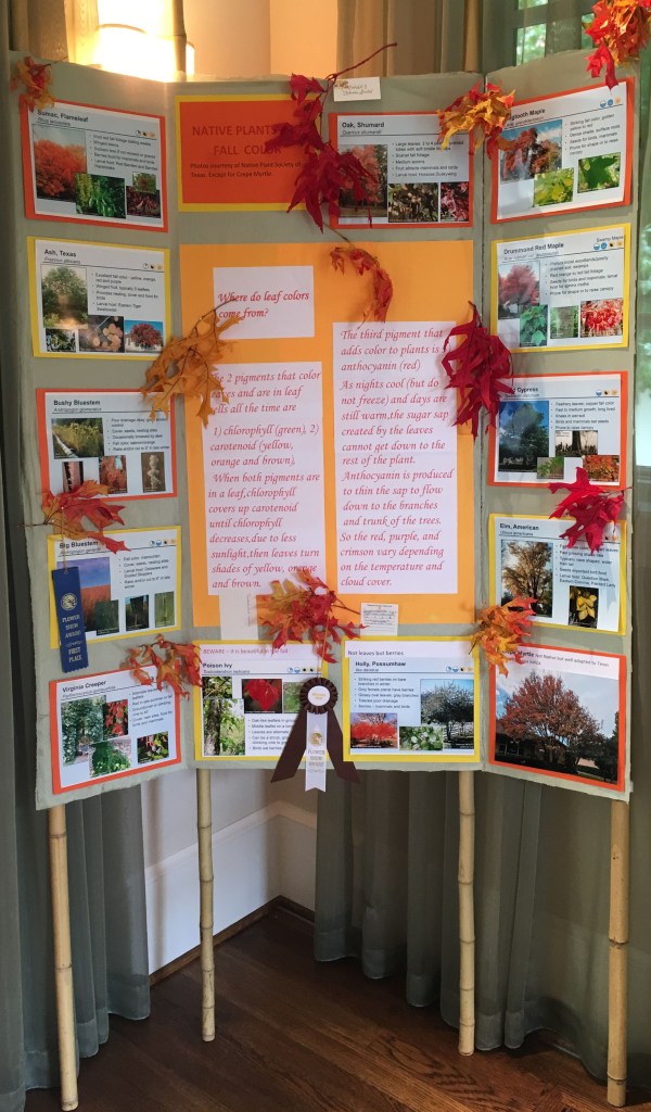 Our Standard Flower Show, Swirling Fall Color, which was held in October 2018 won three First Place awards; Flowershow Achievement Award; FD-2 Floral Design Program, and; TGC, Inc. Flower Show Schedule, Division 1, Category A.