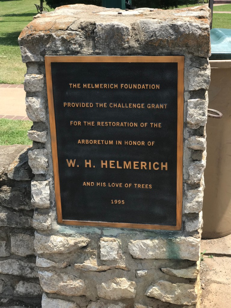 First a plaque honoring W. H. Helmerich for funding to restore the Arboretum.