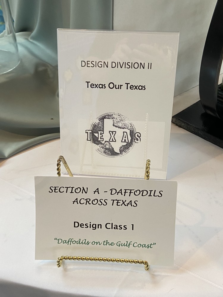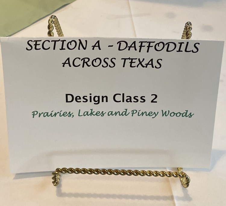 The Texas Daffodil Society and Designers with Flair Study Group sponsored the 2024 American Daffodil Society and NGC, Inc. Small Standard Flower Show was held on Friday March 15th and Saturday March 16th.